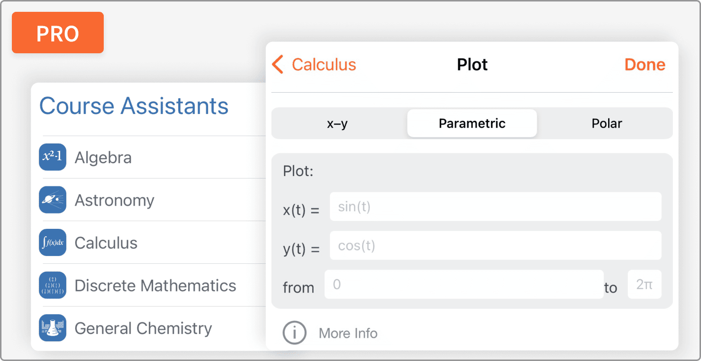 Input Assistants for Popular SubjectsPro users can now access our popular course, reference, professional and personal assistant apps within the main Wolfram|Alpha app, quickly guiding you from inputs to answers.